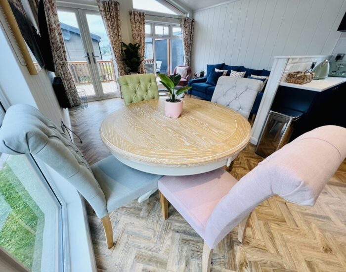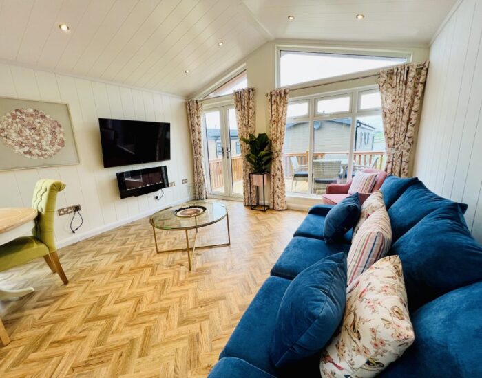From the moment you enter this superb leisure lodge you will be awed by the fully vaulted ceiling which continues into the glass gable. The front of your new leisure lodge is almost all glass and incorporates French doors. Natural wooden blinds are fitted throughout the Arundel which are draped with natural muslin curtains.