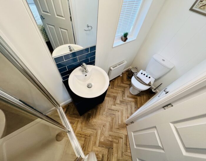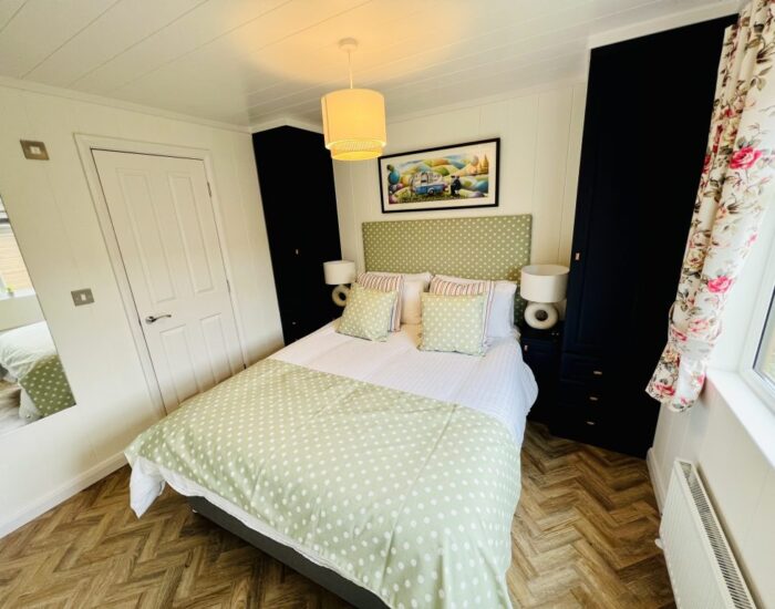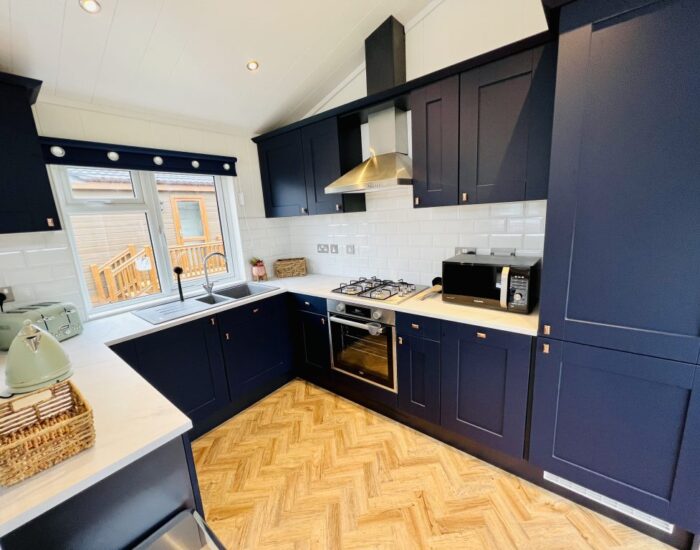 Throughout the rest of your new lodge the wooden floor continues. The kitchen is practical yet stylish. The predominant theme is blue, and we have introduced feature doors. The fully tiled bathroom has the quality and style that you have come to expect from Europe’s most experienced manufacturer. The master bedroom is inviting and luxurious, with an adjoining en suite, we have included everything that you could require in your private space.