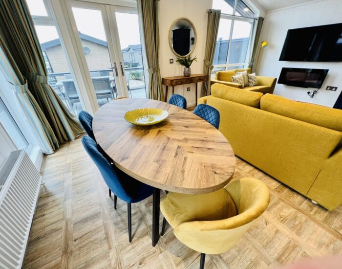 The Silver Oak boasts an open plan lounge/kitchen/diner with French doors leading to decking with views across the lake.